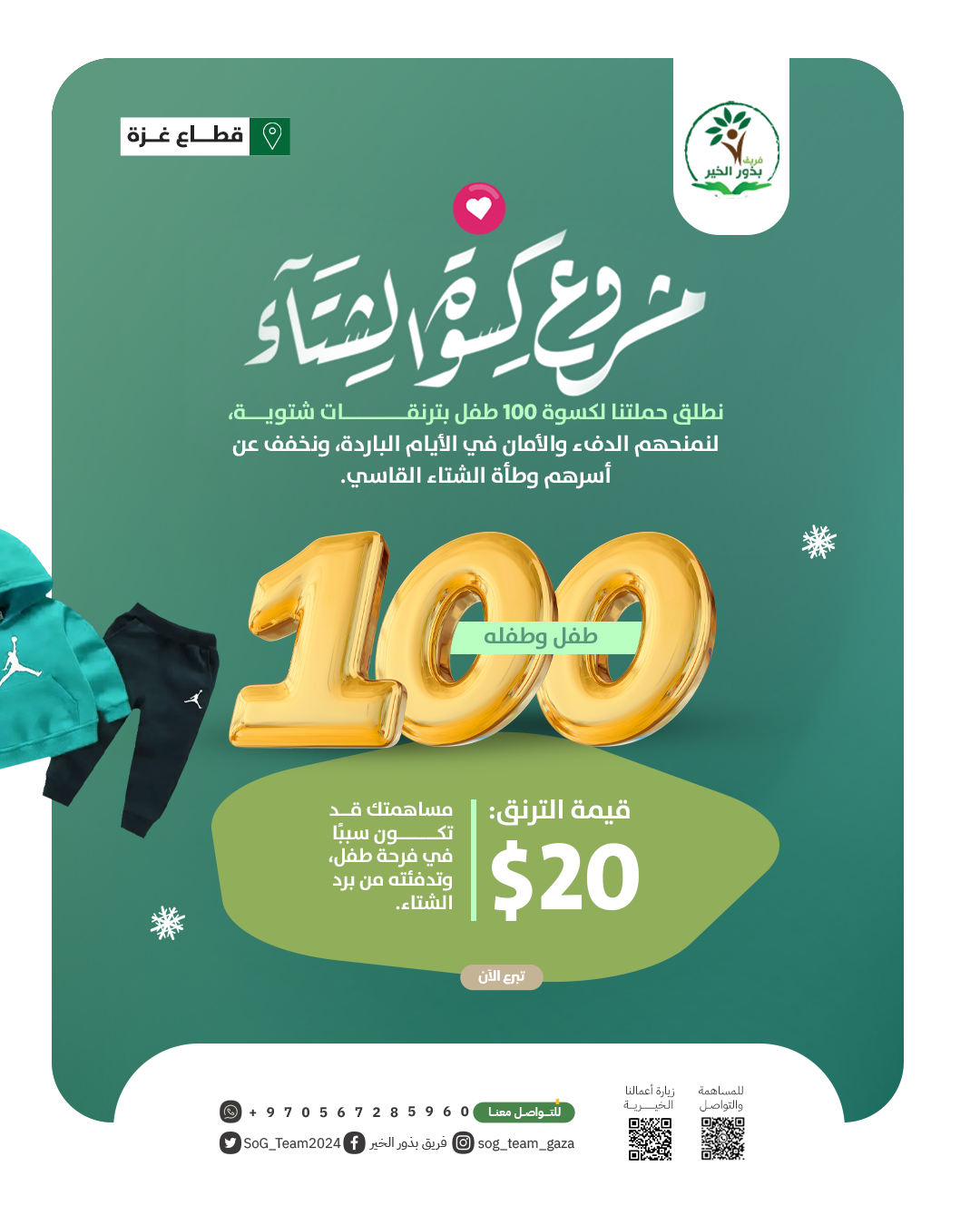 فريق بذور الخير يعمل بشغف وإخلاص لتمكين المجتمعات ودعم الأفراد المحتاجين. رؤيتنا هي بناء عالم أفضل، حيث يجد كل شخص فرصة للحياة بكرامة وأمل. مع كل تبرع ودعم، نزرع بذرة أمل ونبني مستقبل أفضل للأجيال القادمة.